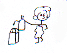 5. Child's mother doesn't notice so/woman goes to/check-out with/bottle in her bag and doesn't pay for it.