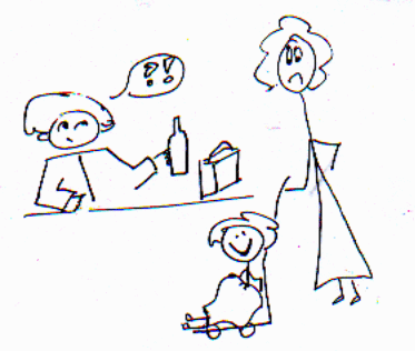 There's a woman shopping in a supermarket with a child. The woman meets a friend and they stop and chat, then the child takes a bottle from a shelf and puts it in the woman's bag. The child's mother doesn't notice so the woman goes to the checkout with the bottle in her bag and doesn't pay for it. Fortunately a shop assistant has noticed what the child has done and has told the checkout girl.